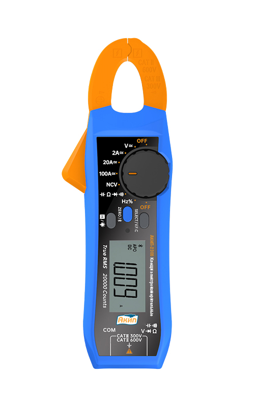 Новые многофункциональные электроизмерительные клещи под торговой маркой АКИП™ предназначены для измерения переменного и постоянного тока без разрыва цепи до 100 А, переменного и постоянного напряжения до 600 В, сопротивления постоянному току до 200 МОм, измерения частоты до 20 МГц и коэф. заполнения (%Duty), емкости до 20 мФ, прозвонки цепи и теста диодов. Базовая погрешность ±3% (ACA).